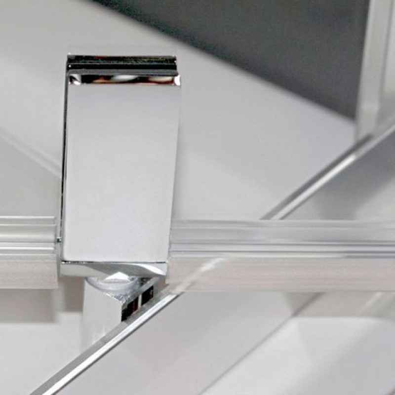Система крепления к стене состоит из двух П-образных профилей, которые вставляются друг в друга. Такое решение уже давно стало классикой в конструкцииях душевых уголков и доказало свою практичность. Преимужества этой системы крепления душевых уголков очевидны: во-первых, есть большой предел в нивелировании неровности стен +/- 20 мм, во-вторых, крепежные болты скрываются внутри профильной системы и не нарушают эстетику.