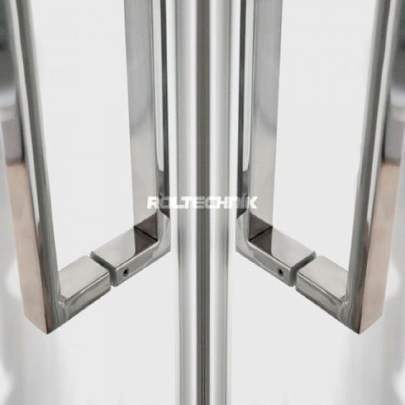 Двери открываются как внутрь, так и наружу душевой кабины, ширина входа регулируется при установке.