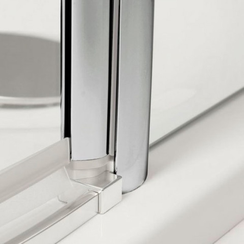 Нижняя часть раздвижных дверей вообще не имеет роликов, фиксация дверей в нижней части выполняется за счёт направляющей. Такая конструкция позволила обеспечить безпороговый вход в душевую, что может быть очень полезно для детей и пожилых людей.