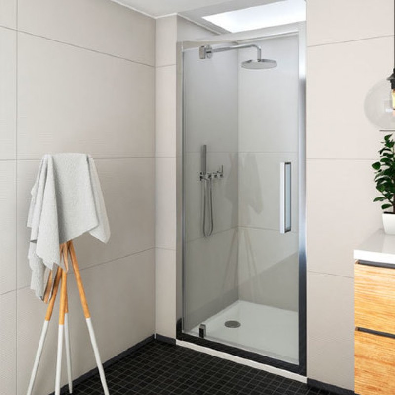 Двери открываются как внутрь, так и наружу душевой кабины, ширина входа регулируется при установке.