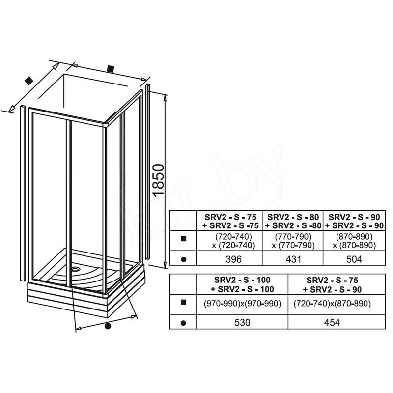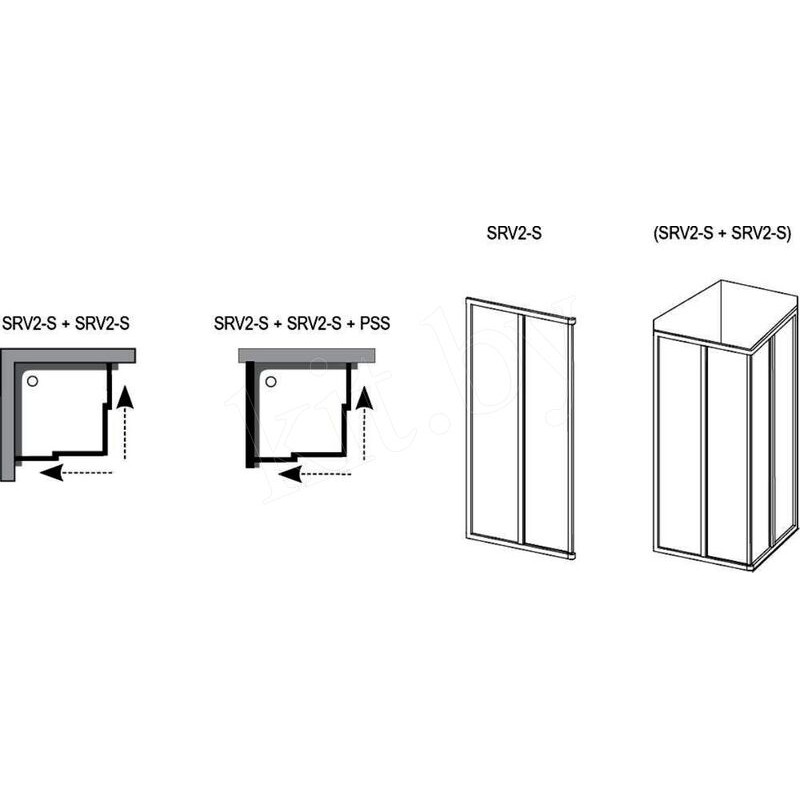 Для создания душевого уголка необходимо два изделия SRV2-S, в комплектацию каждого из которых входит угловой соединитель.