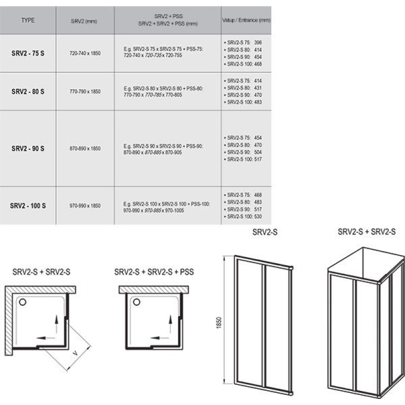С помощью комбинации разных размеров двух частей получите квадратный или прямоугольный варианты душевого уголка, например, 75 x 90 см, 90 x 90 см, 80 x 100 см и т.д. Устанавливается в облицованный кафелем угол ванной комнаты на поддоны RAVAK ANETA, ANGELA, PERSEUS, PERSEUS PRO, PERSEUS PRO FLAT, PERSEUS PRO CHROME, GIGANT PRO, GIGANT PRO FLAT, GIGANT PRO CHROME или непосредственно на пол со встроенным душевым каналом. Возможна установка у стены при комбинации с неподвижной стенкой PSS. С помощью регулирующих профилей NPS душевой уголок можно адаптировать к нестандартным размерам строительного проема.