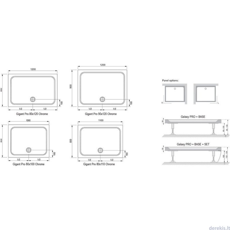 Дополнительно комплектуется: ножки для поддона Galaxy Pro Base XB2J000000N, сифон X01309, экран к поддону Gigant Pro Set правый/левый XA83DP01010/XA83DL01010.