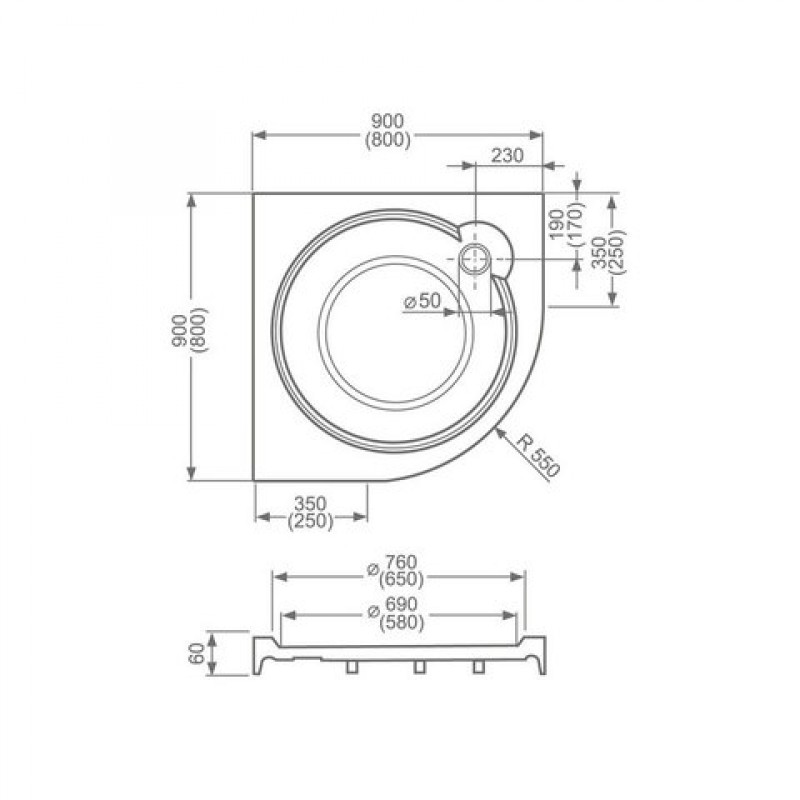 Радиусные DREAM-P доступны в следующих размерах: 800 х 800 мм, 900 х 900 мм. Радиус 55 см.