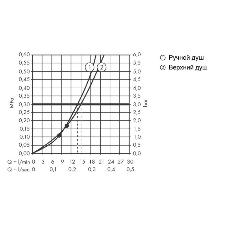 - максимальный расход воды при 3 бар: 15 л/мин;