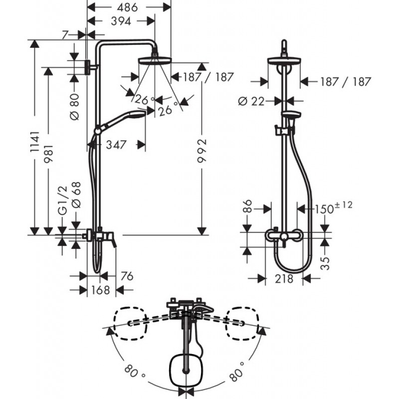 - размер душевого диска: 187 мм