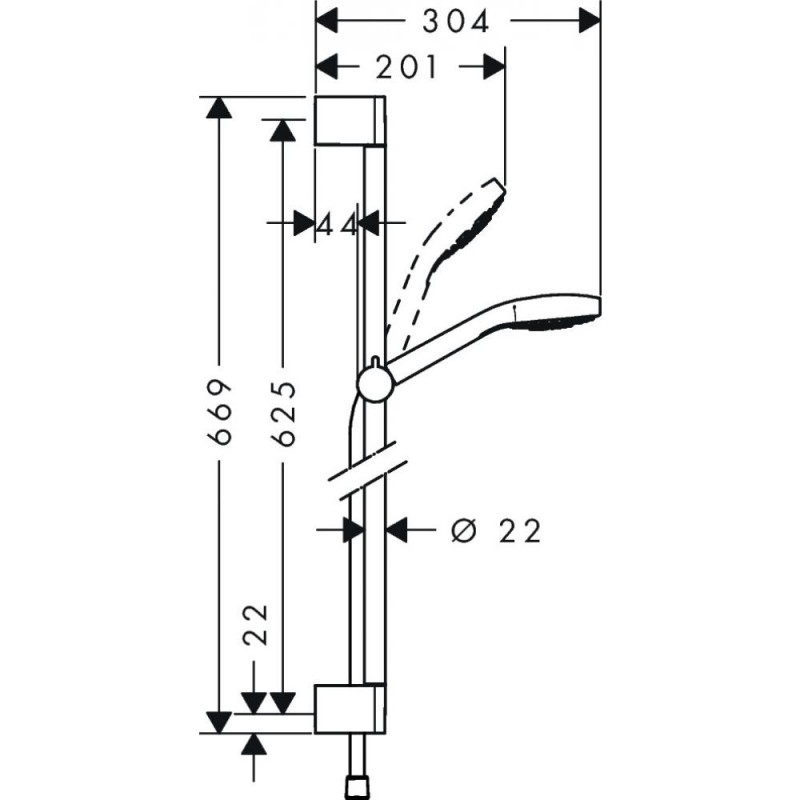 Душевой гарнитур Hansgrohe Croma 110 Select S Multi 26560400. В комплекте трехрежимная душевая лейка с кнопкой Select, штанга, держатель для лейки, слайдер и шланг с защитой от изломов. Угол наклона держателя регулируется на 45°.