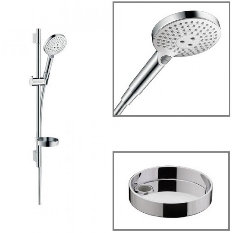 В комплекте: ручной душ Raindance Select S 120 3jet, штанга для душа Unica’S Puro, душевой шланг Isiflex, мыльница Cassetta’S Puro.