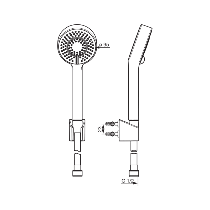 - Элементы душа: Держатель душевой лейки, Ручной душ, Шланг для душа (1500 мм)