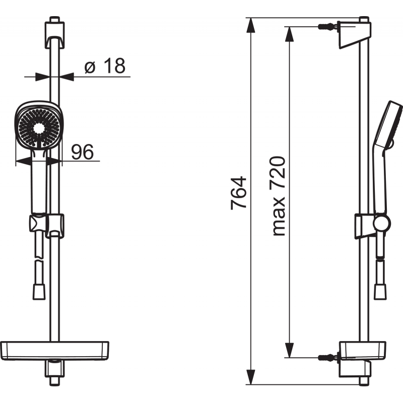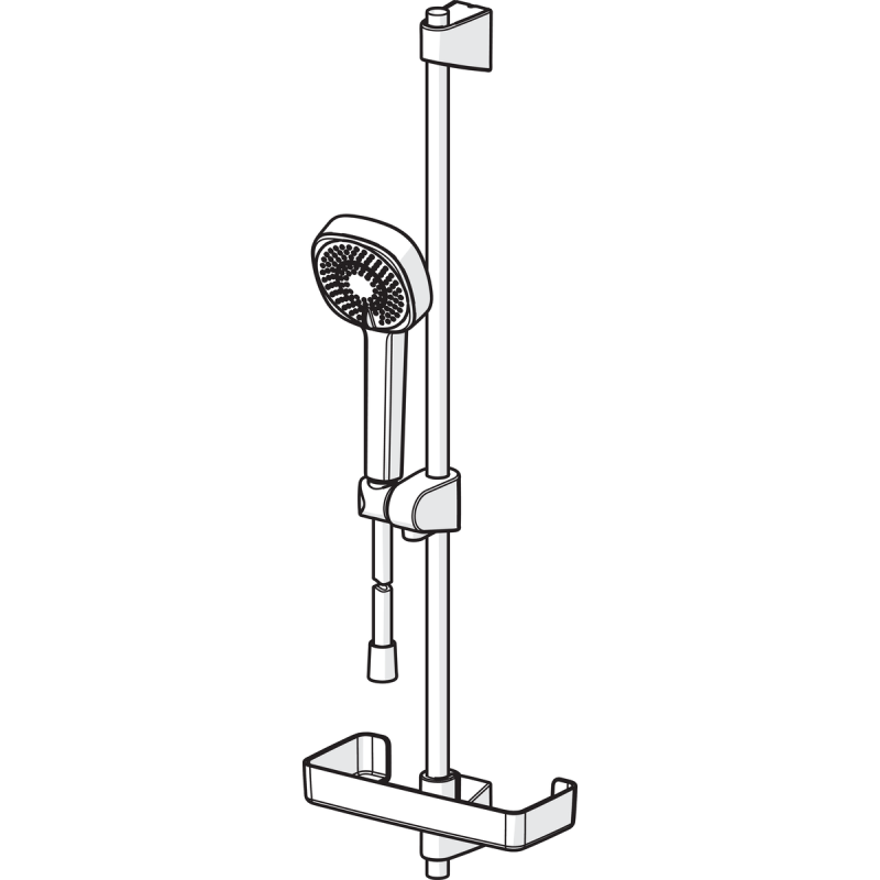 Комплектация: Ручной душ, душевая штанга, регулируемый держатель штанги, мыльница, шланг для душа (1750 мм)