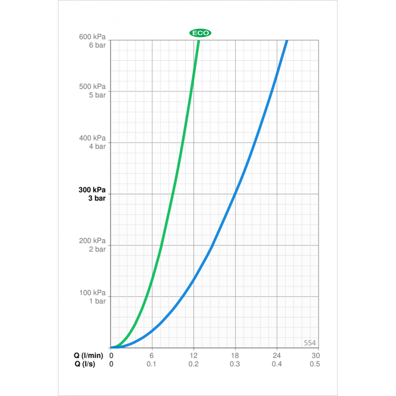 - Расход воды при 300 кПа в эко-режиме: 0.15 l/s