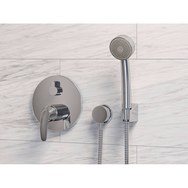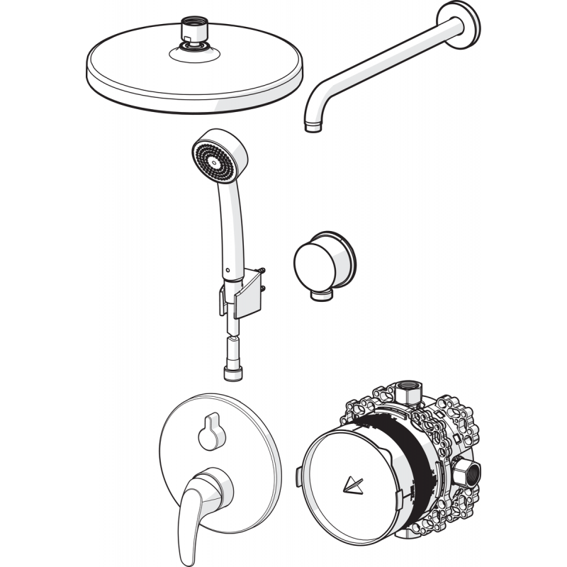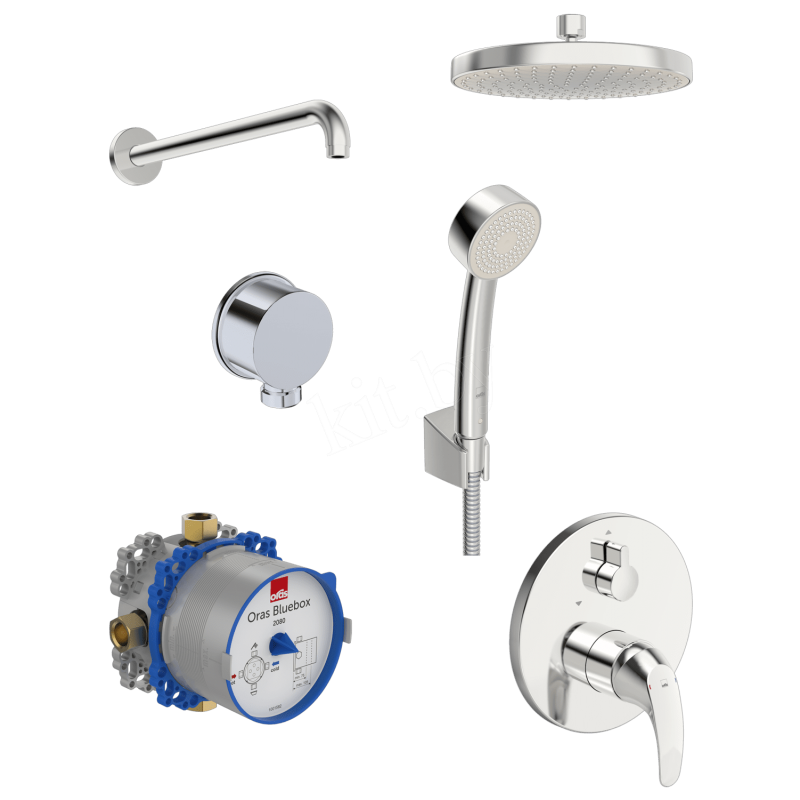 Душевая система Oras 2091 – система скрытого монтажа с верхним душем. Оснащена встраиваемым термостатическим смесителем с защитой от ожогов и кнопкой ограничения расхода воды. Комплект включает верхний душ ø200 мм с душевой штангой 350 мм, ручной душ ø 70 с защитой от известковых отложений, выводом из стены для шланга, настенным держателем для душа и душевым шлангом.