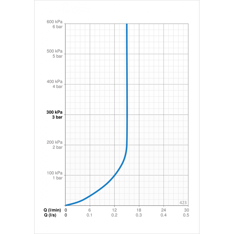 - Расход воды (300 кПа, с ограничителем потока): 0.25 л/с.