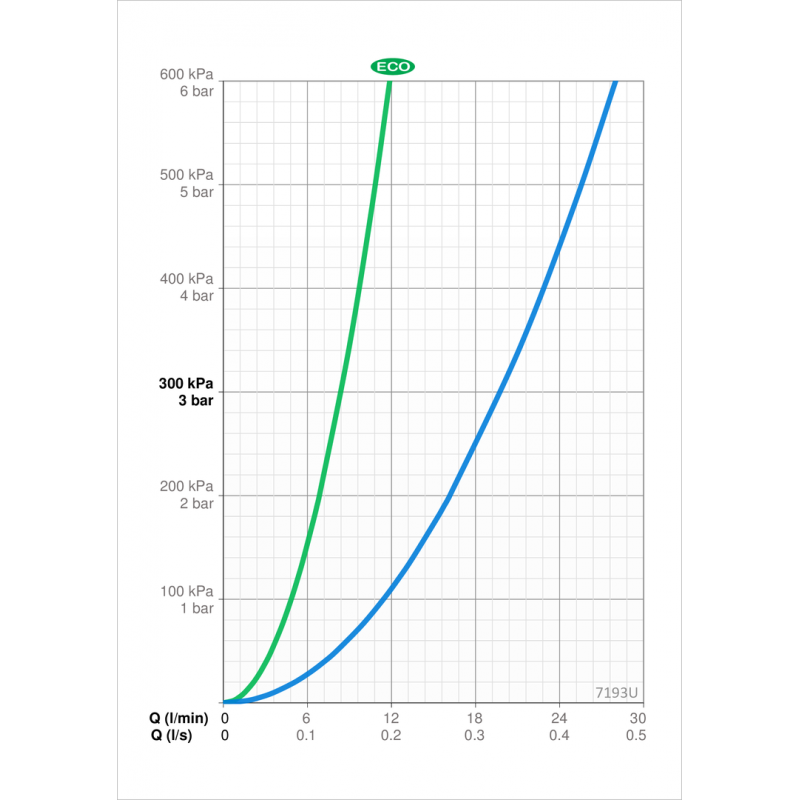 - Расход воды при 300 кПа в эко-режиме 0.14 l/s,