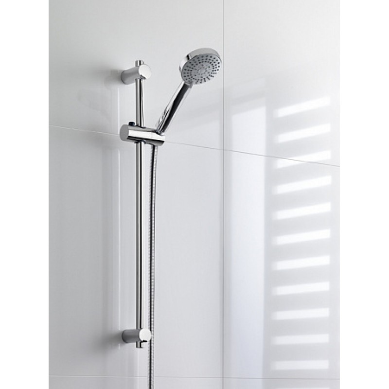 Душевая лейка Stella c функциями Rain, Pulse, Tonic. Длина гибкого ПВХ шланга 170 см. Штанга хромированная, крепления регулируются по высоте.