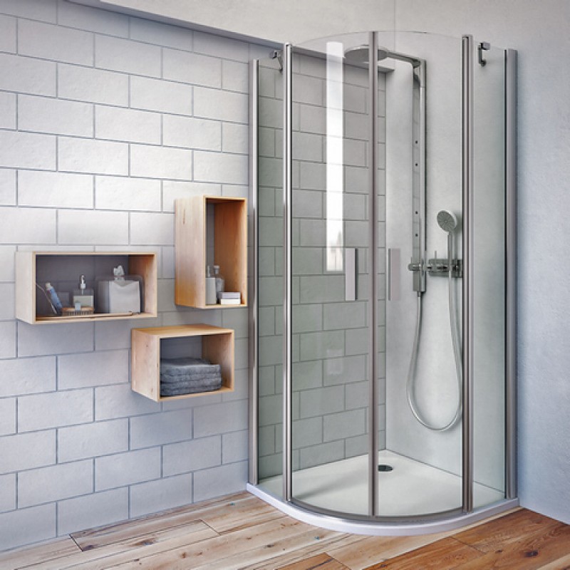 - прямоугольные и радиусные душевые уголки с открывающимися дверями,