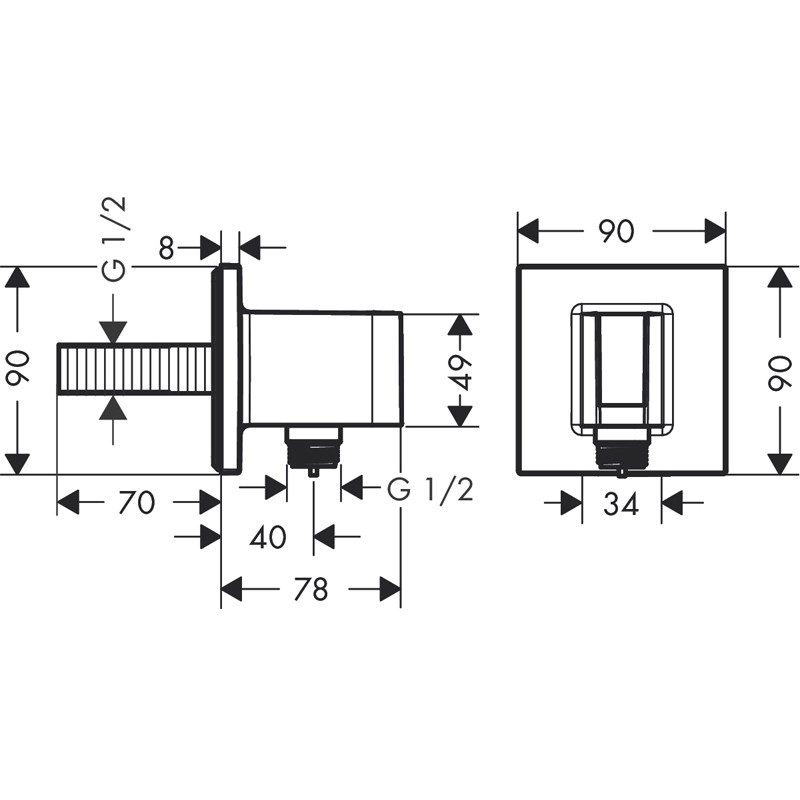 Шланговое подключение Hansgrohe Fixfit Porter Square 26486000 с держателем для лейки - модель с квадратным основанием, цвет хром. Оборудована клапаном обратного тока воды. Держатель предназначен для шлангов с конической гайкой.