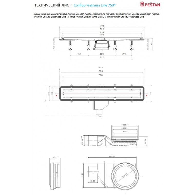Душевой лоток Pestan Line 750 с деталями из полипропилена, который устойчив к механическим, химическим и термическим повреждениям. Благодаря S-форме сифона, мокрый гидрозатвор надежно защищает от проникновения запаха из канализации. Ультранизкая высота сифона 52 мм. Высота водяного столба 30 мм. (в соответствии с EN 1253). Возможность регулирования высоты монтажа за счет ножек, входящих в комплект, что позволяют быстро и удобно установить желоб и выровнять его в горизонтальной плоскости. Рамка и решеткой из нержавеющей стали (AISI 304 SS), класс К3 (до 300 кг нагрузки, в соответствии с EN 1253). Конструктивно возможна вкладка в рамку керамическую плитку, мрамор, закаленное стекло. Решетка является частью комплекта. Изображение и цвет на мониторе могут отличаться от оригинала.