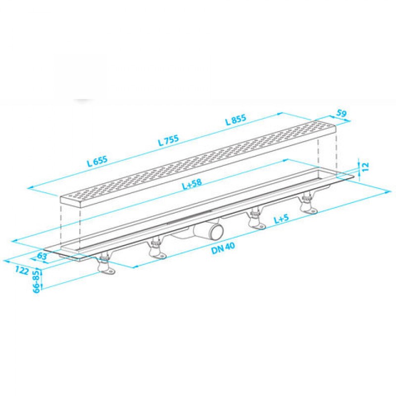 Данный сливной трап серии Design 1 представлен в разных размерах: 390, 655, 755, 855 мм.
