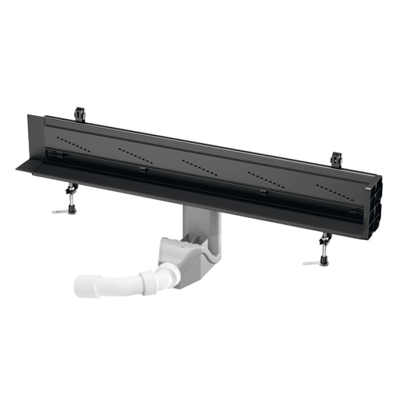 При использовании данной модели трапа, достаточное покрытие пола цементной стяжкой не представляется возможным из-за высокого расположения выпуска. Одним из возможных решений может быть изменение размера плитки и/или возможность цементации с эпоксидной смолой.