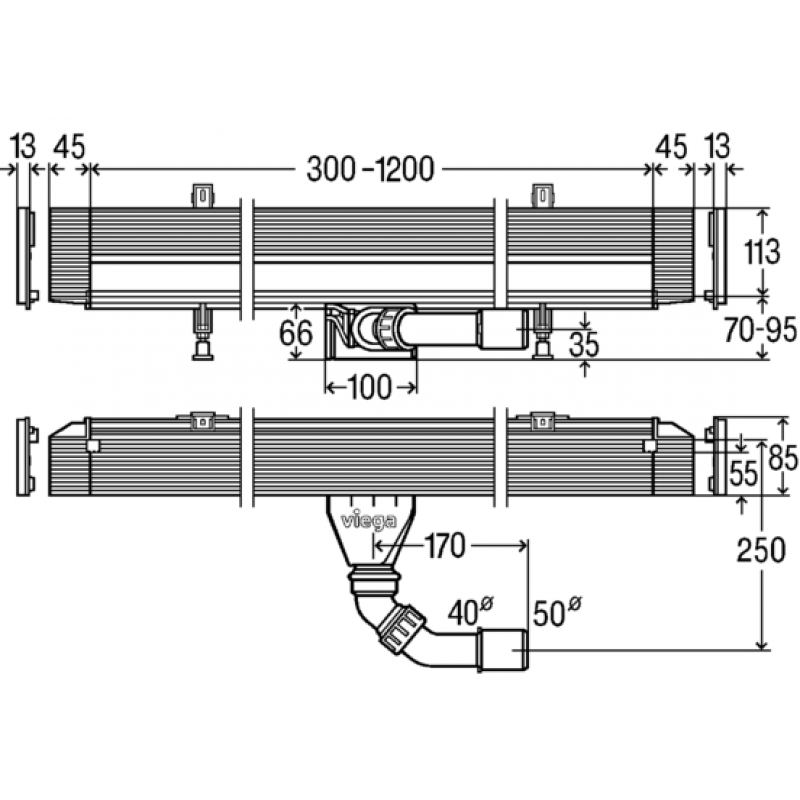 Декоративная решетка Viega 736569 SR1, матовая, длина укорачиваемая 30-120 см приобретается дополнительно.