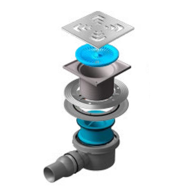 Душевой трап Pestan Square 1 с решеткой из нержавеющей стали. Корпус, сифон изготовлены из качественного полипропилена. Сталь решетки AISI 304 SS класс К3 выдерживает до 300 кг нагрузки, в соответствии с EN 1253. Душевой трап Square 1 с регулируемым углом выхода на 15°, база с 1 выходом. Наличие в комплектации изолирующего воротника делает ненужным использование битумных и пластиковых лент для герметизации.