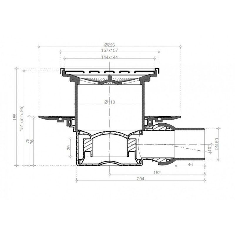 Точечный душевой трап Pestan Tide1 без рамки с деталями из полипропилена, который устойчив к механическим, химическим и термическим повреждениям. Благодаря S-форме сифона, мокрый гидрозатвор надежно защищает от проникновения запаха из канализации. Высота водяного столба 30 мм. (в соответствии с EN 1253). Возможность регулирования высоты монтажа за счет ножек, входящих в комплект, что позволяют быстро и удобно установить желоб и выровнять его в горизонтальной плоскости. Класс К3 (до 300 кг нагрузки, в соответствии с EN 1253). Возможна поставка без кольца и сетки-фильтра. Изолирующий воротник в комплекте (гидроизоляционное кольцо и фланец) для герметизации между стяжкой пола и плиткой, не требуется использование битумных и пластиковых лент