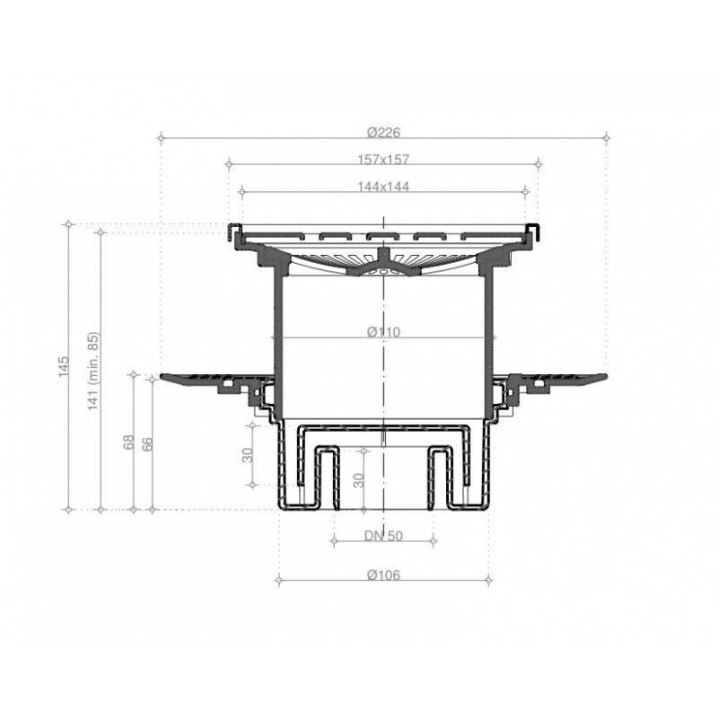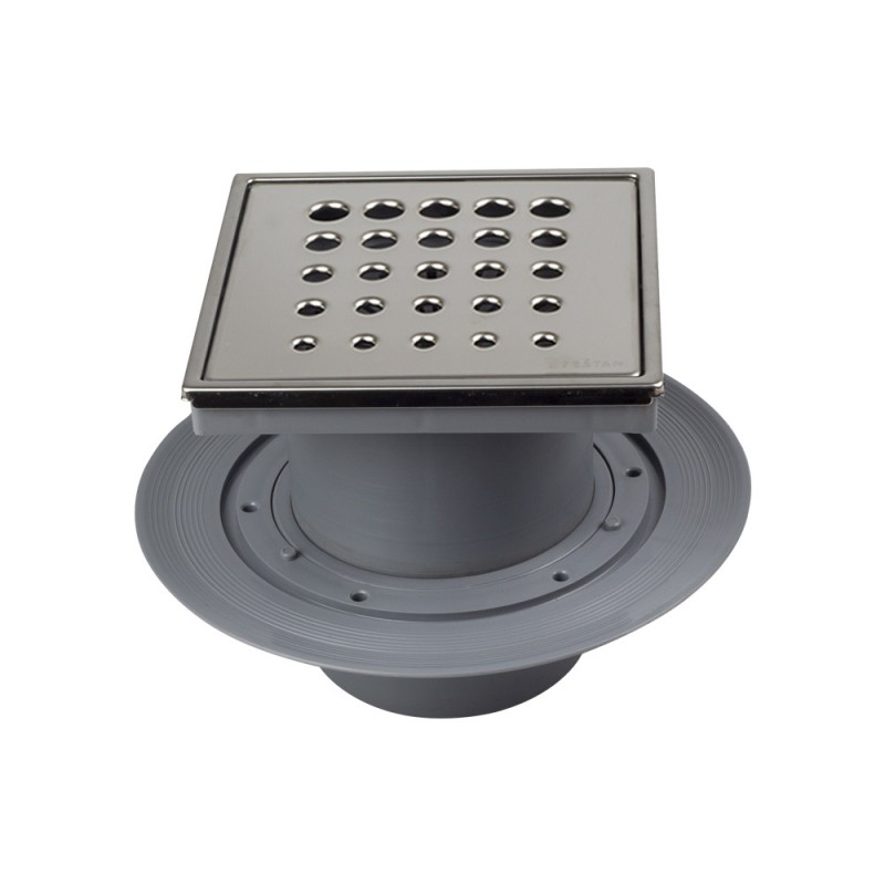 Точечный душевой трап Pestan 13000075 Vertical Drops с рамкой с деталями из полипропилена, который устойчив к механическим, химическим и термическим повреждениям. Благодаря S-форме сифона, мокрый гидрозатвор надежно защищает от проникновения запаха из канализации. Высота водяного столба 30 мм. (в соответствии с EN 1253). Возможность регулирования высоты монтажа за счет ножек, входящих в комплект, что позволяют быстро и удобно установить желоб и выровнять его в горизонтальной плоскости. Рамка и решетка из нержавеющей стали (AISI 304 SS), класс К3 (до 300 кг нагрузки, в соответствии с EN 1253). Сетка-фильтр, высота монтажа 85мм, возможна поставка без кольца и сетки-фильтра. Наличие в комплектации изолирующего воротника (гидроизоляционного кольца и фланца) делает ненужным использование битумных и пластиковых лент (для герметизации между стяжкой пола и плиткой);