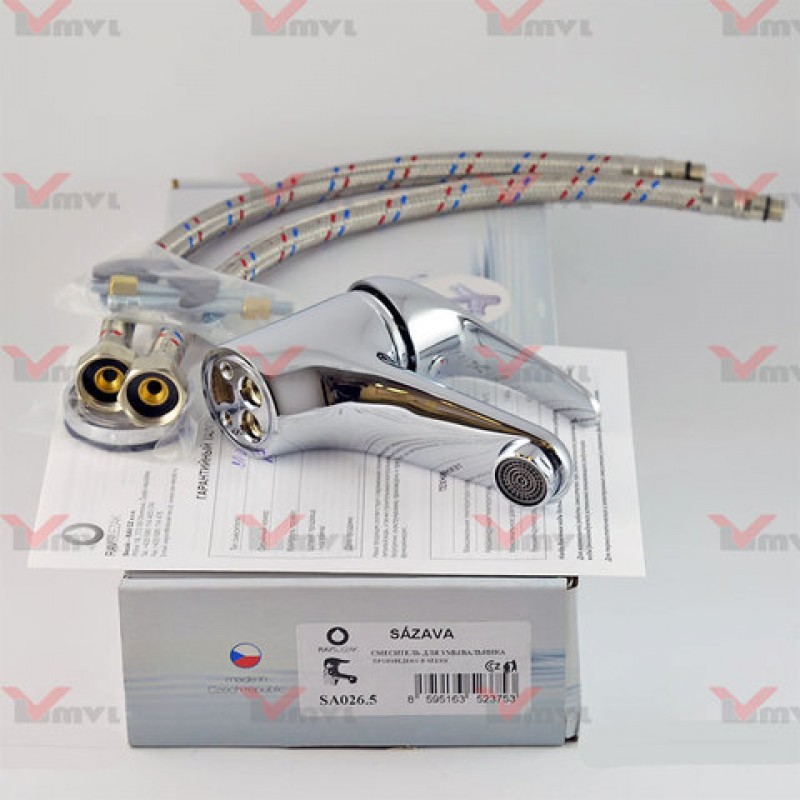 Смеситель серии SAZAVA производится в цельнолитом корпусе и имеет металлическую ручку. Кран оснащён аэратором МА0001Е с ситечком Anticalc (специальная резиновая конструкция ситечка позволяет сэкономить расход воды и упростить чистку от известкового налёта). Модель SA026.5 поставляется без донного клапана, а модель SA027.5 - c донным клапаном. Поставляется вместе с гибкой подводкой 1/2' длиной 35 см (под заказ можно и длиннее). У данного смесителя есть 3 варианта ручек.