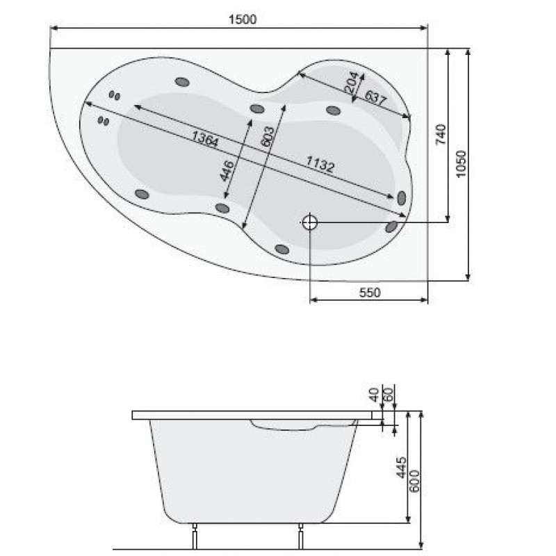 - Форма:асимметричная, полукруглая, угловая