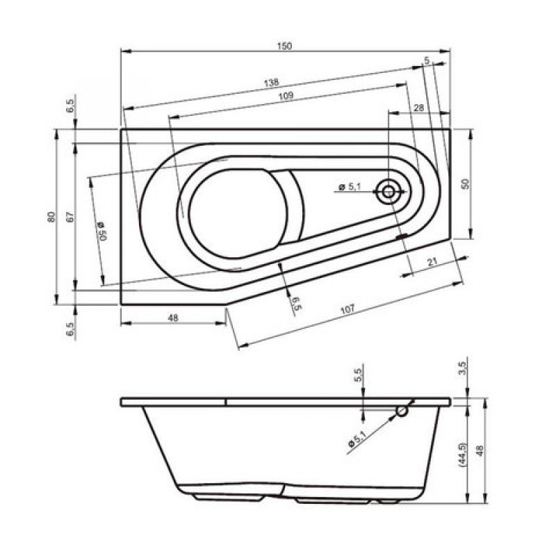 Ассиметричная ванна для малогабаритных квартир. Имеет зауженную область в зоне размещения ног, однако это не снижает ее потребительские свойства и практически не влияет на комфорт от принятия ванны. Такое решение делает помещения ванной комнаты больше и удобнее.