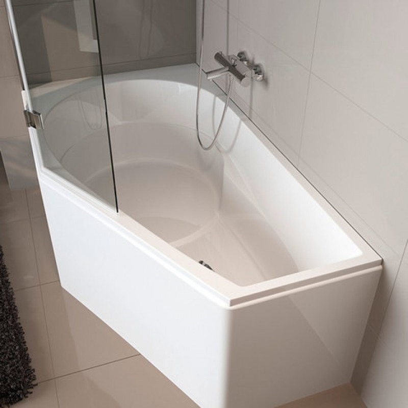 Ассиметричная ванна создана для небольших ванных комнат, где надо достичь компромиса между красотой и практичностью. Ширина ванны 90 см позволяет в небольшой ванной комнате разместить полноразмерный умывальник или стиральную машину. Геометрический круг на дне ванны позволяет получить просторный душевой уголок и комфортную ванну одновременно, достаточно добавить только шторку.