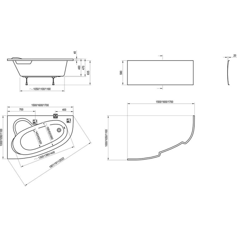 К ванне Ravak Asymmetric можно докупить переднюю панель и сточный комплект для ванны. Ее нельзя дополнить шторой для ванны или подголовником.