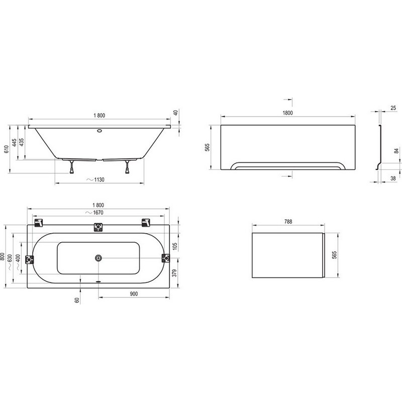 Ванна изготовлена из литого акрила и усилена стекловолоном.
