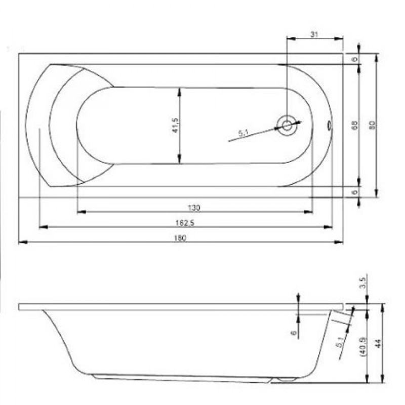 Глубина ванны - 44 см. Размеры: 150х70 см, 170х80 см и 180х80 см, соответственно объем ванны - 150, 210, 230 литров.