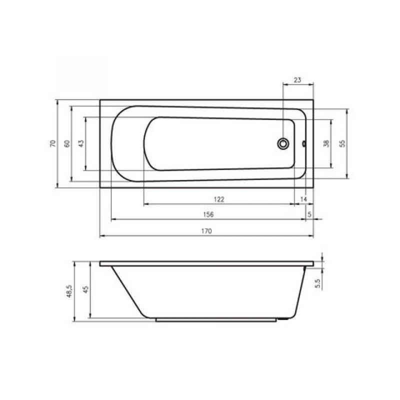 Размеры - 170х70 см. Глубина - 45 см. Объем - 150 л.