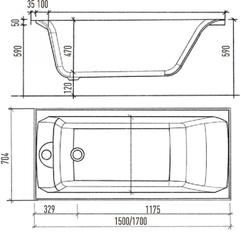 Глубина ванны - 45 см. Ванна QWATRY бывает двух размеров: 150х70 и 170х70 см, соответственно объем ванны - 187 и 220 литров.