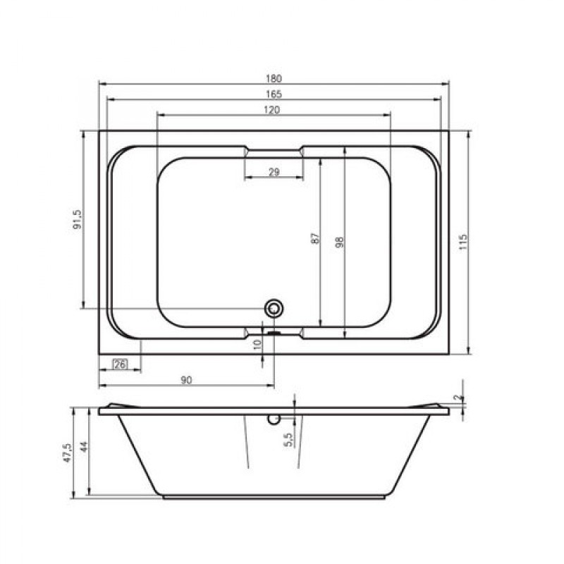 Размеры - 180х115 см. Глубина - 44 см. Объем - 325 литров.