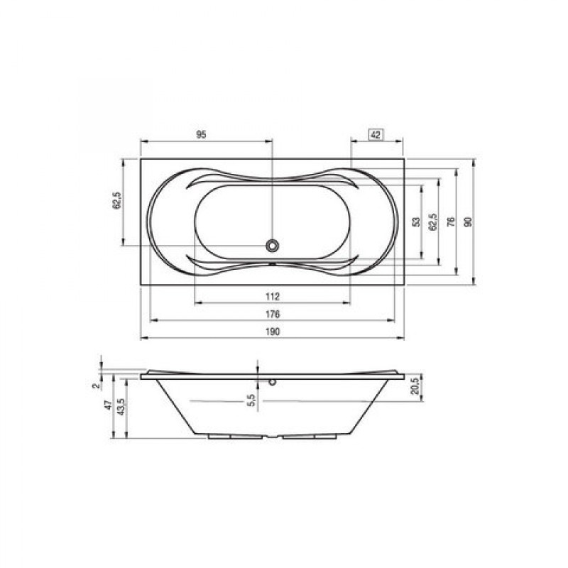 Ванна бывает в двух размерах: 180х80 и 190х90 см.