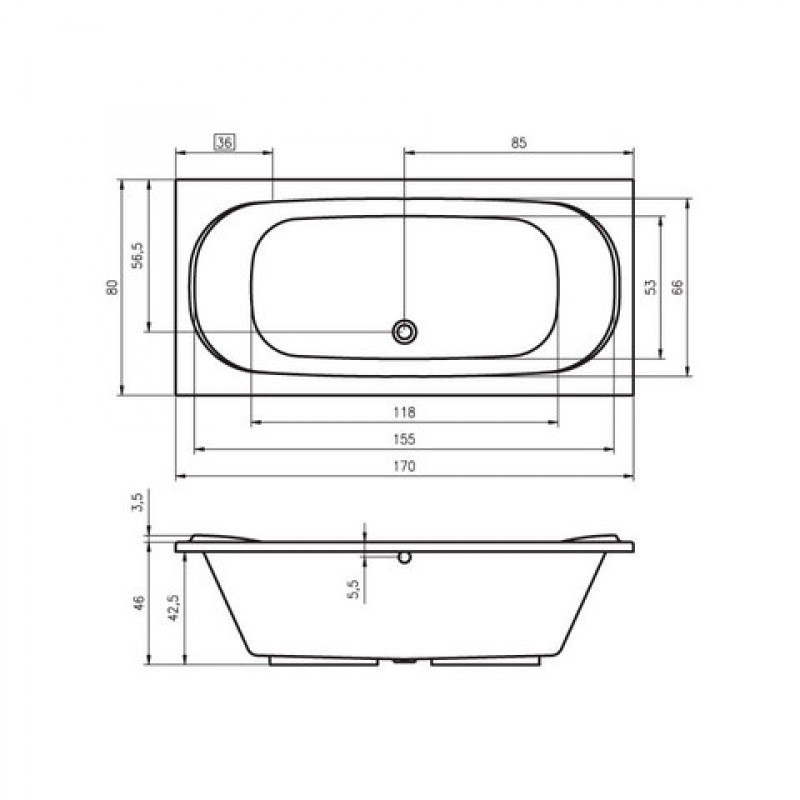 Размеры - 170х80 см. Глубина - 43 см. Объем - 155 л.
