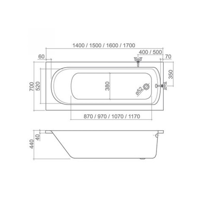 Ванна Vanessa Neo имеет размеры: 140х70, 150х70, 160х70 и 170х70 см.